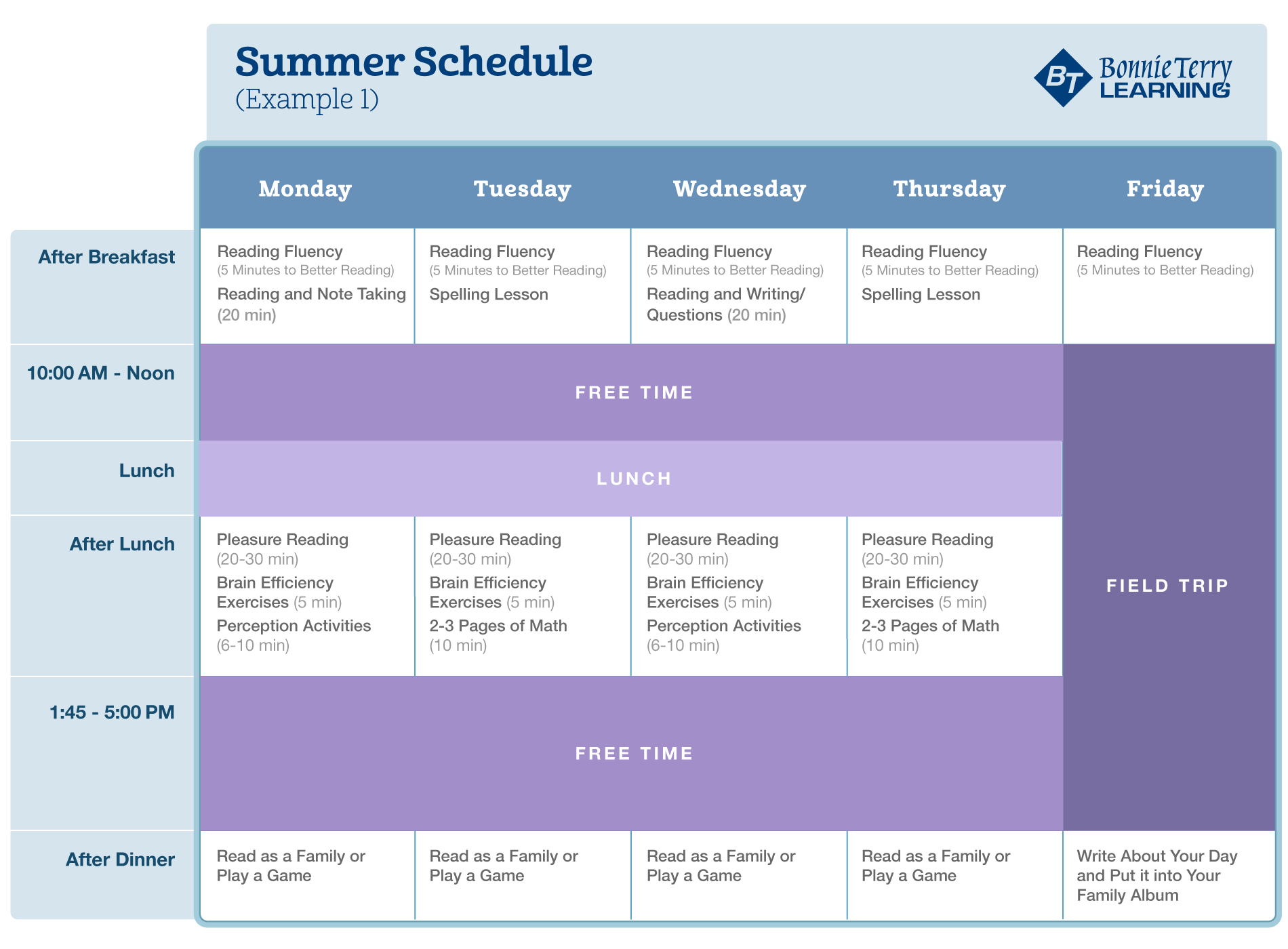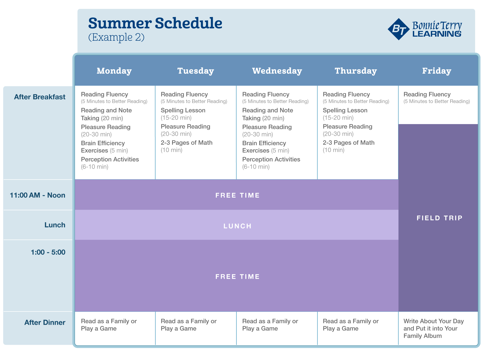 Improving fluency is one of the most important things you can do to improve reading skills. In our summer reading program, you will get our specially designed reading drills to improve your reading speed and accuracy. This part of the program just takes 5 minutes. It is the fluency training to improve their fluency over the summer. Doing this made it so within 30 minutes of breakfast each of my kids had worked for 20 minutes on their own and worked with me for 5 minutes on their reading fluency.